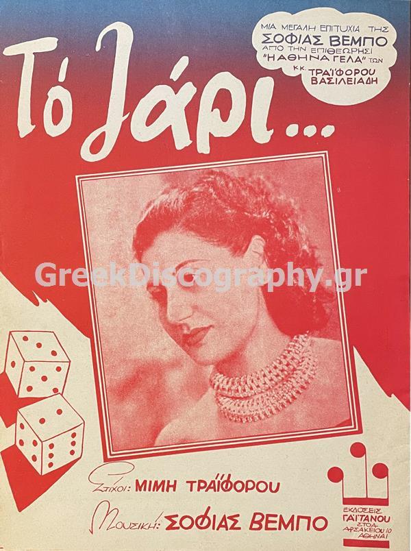 (Σοφία Μπέμπου) τραγουδίστρια, ηθοποιός,Γεννήθηκε στις 15/02/1910 στην Καλλίπολη της ανατολικής Θράκης, πρωτοεμφανίστηκε στο θέατρο το 1933 και στον κινηματογράφο το 1938, παντρεμένη από το 1957 με τον Δ.Τραϊφόρο, πέθανε στις11/3/1978 στην Αθήνα