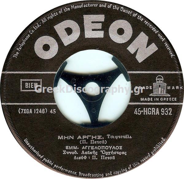 Ακορντεόν: ΧΑΛΚΙΑΣ ΝΙΚΟΛΑΟΣ, Κιθάρα: ΠΕΤΣΑΣ ΠΑΝΑΓΙΩΤΗΣ, Κλαρίνο: ΠΑΝΟΥ ΠΕΛΟΠΙΔΑΣ, Μπουζούκι: ΚΑΡΑΠΑΤΑΚΗΣ ΒΑΣΙΛΗΣ