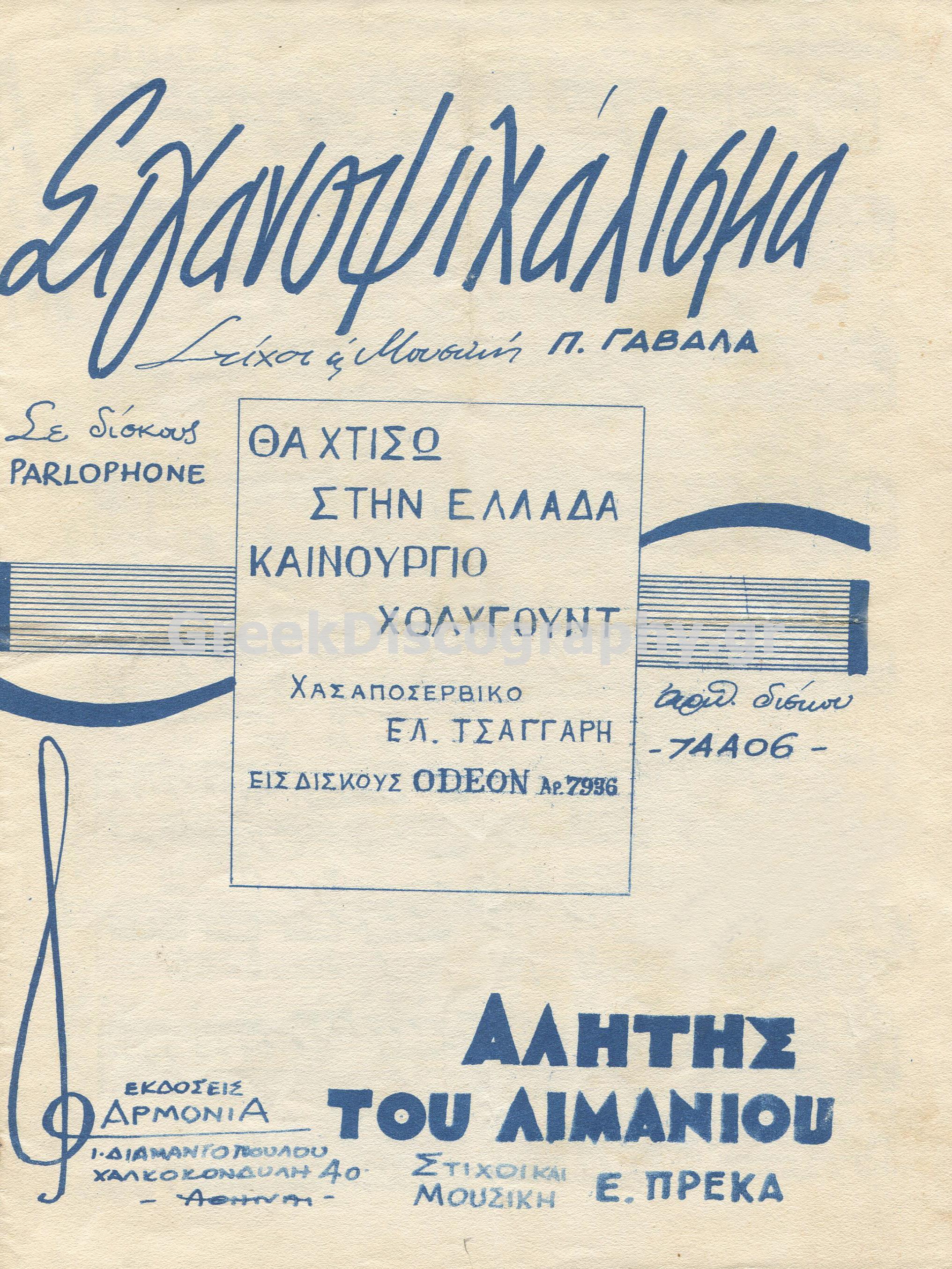 Ακορντεόν: ΒΑΣΙΛΕΙΑΔΗΣ ΒΑΣΙΛΗΣ, Κιθάρα: ΔΕΔΕΣ ΙΩΑΝΝΗΣ, Μπάσο: ΑΝΑΓΝΩΣΤΟΥ ΣΠΥΡΟΣ, Μπουζούκι: ΚΑΤΙΝΑΡΗΣ ΑΝΤΩΝΗΣ, Μπουζούκι: ΛΙΩΣΗΣ ΣΠΥΡΟΣ