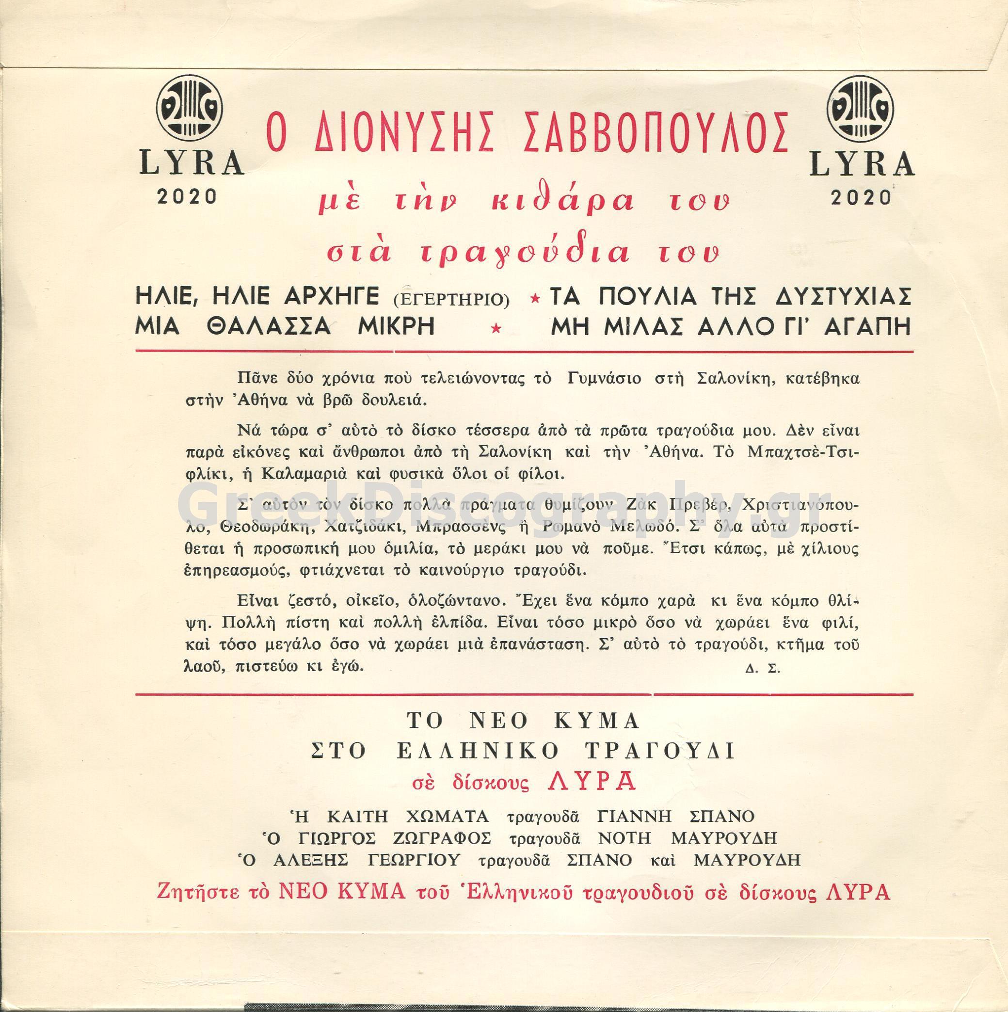 τραγουδοποιός, γεννήθηκε στις 2/12/1944 στη Θεσσαλονίκη, ζει στην Αθήνα από το 1963, ανεβαίνει στο πάλκο το 1964, μπήκε στην δισκογραφία το 1965 [Μη μιλάς άλλο γι αγάπη]