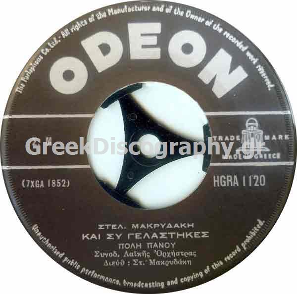 Ακορντεόν: ΚΟΙΝΟΥΣΗΣ ΓΙΩΡΓΟΣ, Κιθάρα: ΔΕΔΕΣ ΙΩΑΝΝΗΣ, Μπαγλαμάς: ΠΕΤΣΑΣ ΠΑΝΑΓΙΩΤΗΣ, Μπάσο: ΑΝΑΓΝΩΣΤΟΥ ΣΠΥΡΟΣ, Μπουζούκι: ΜΑΚΡΥΔΑΚΗΣ ΣΤΕΛΙΟΣ, Μπουζούκι: ΠΑΛΑΙΟΛΟΓΟΥ ΓΙΑΝΝΗΣ