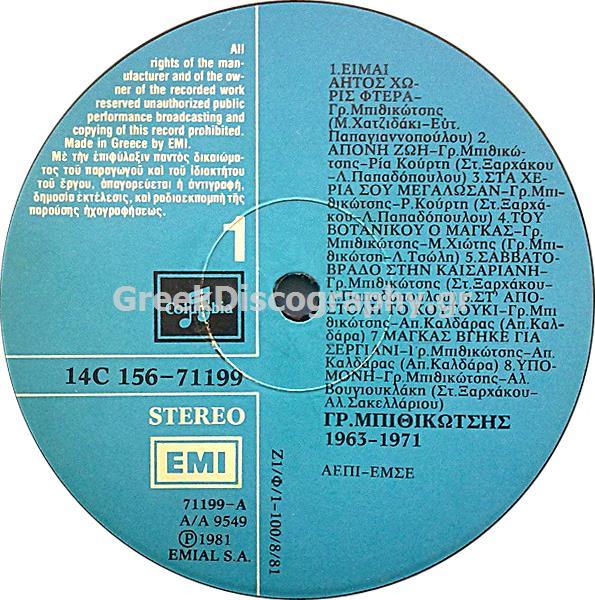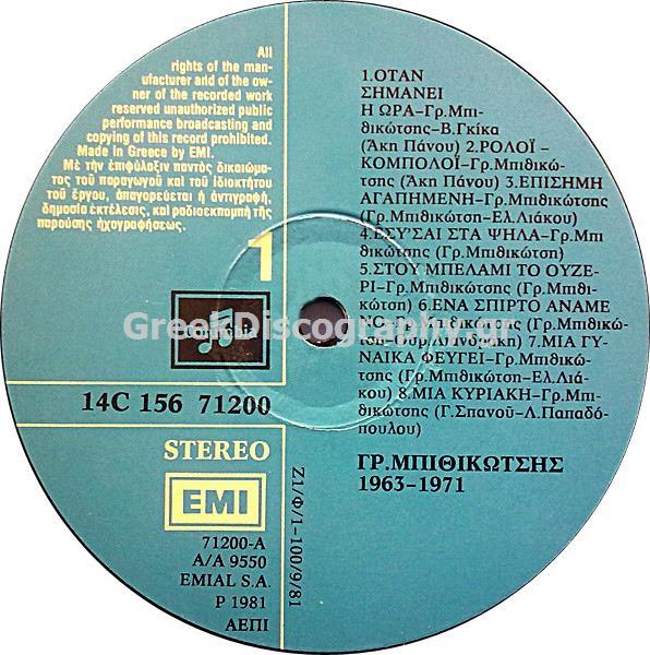 ΓΡΗΓΟΡΗΣ ΜΠΙΘΙΚΩΤΣΗΣ 1963-1971