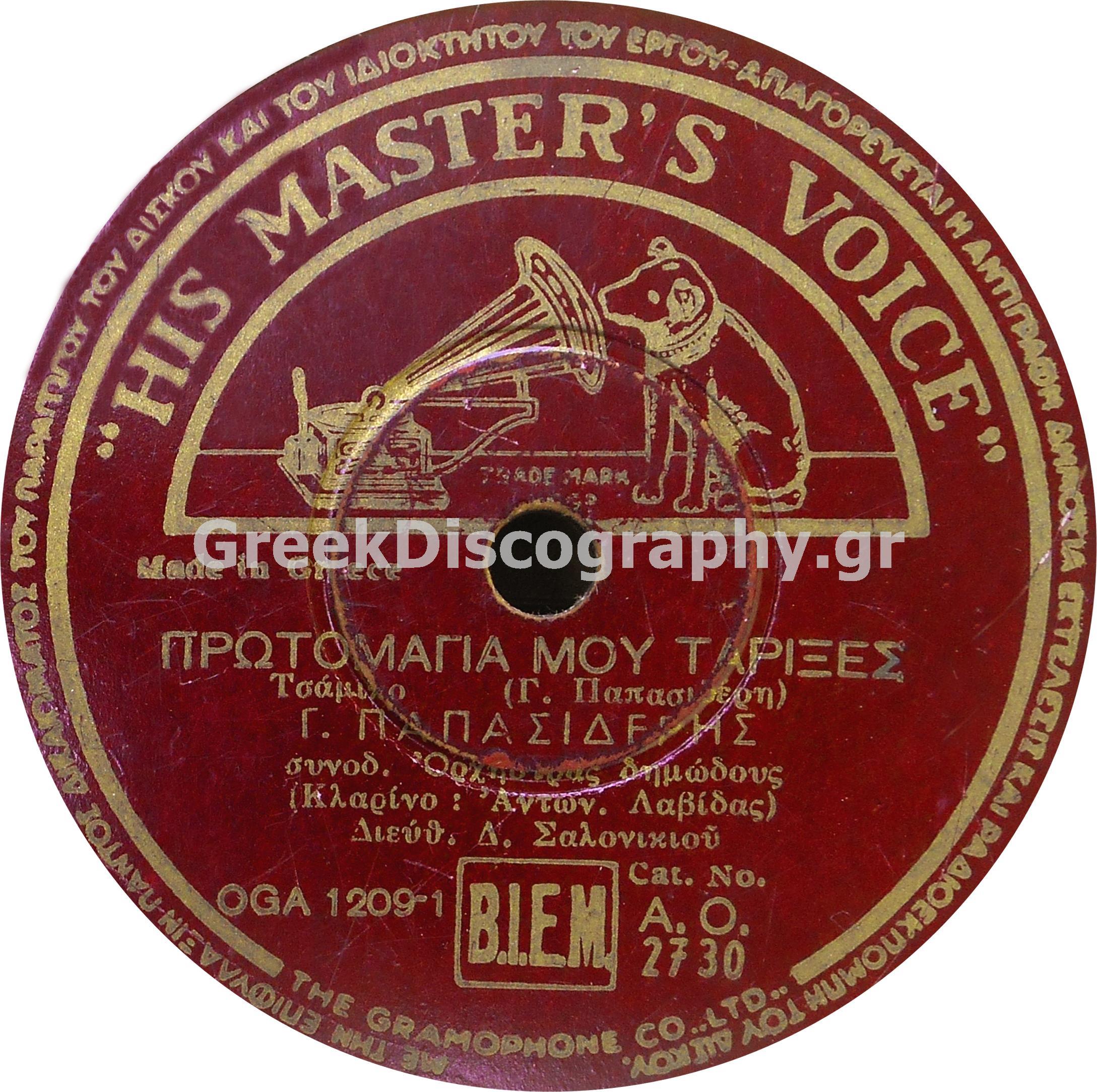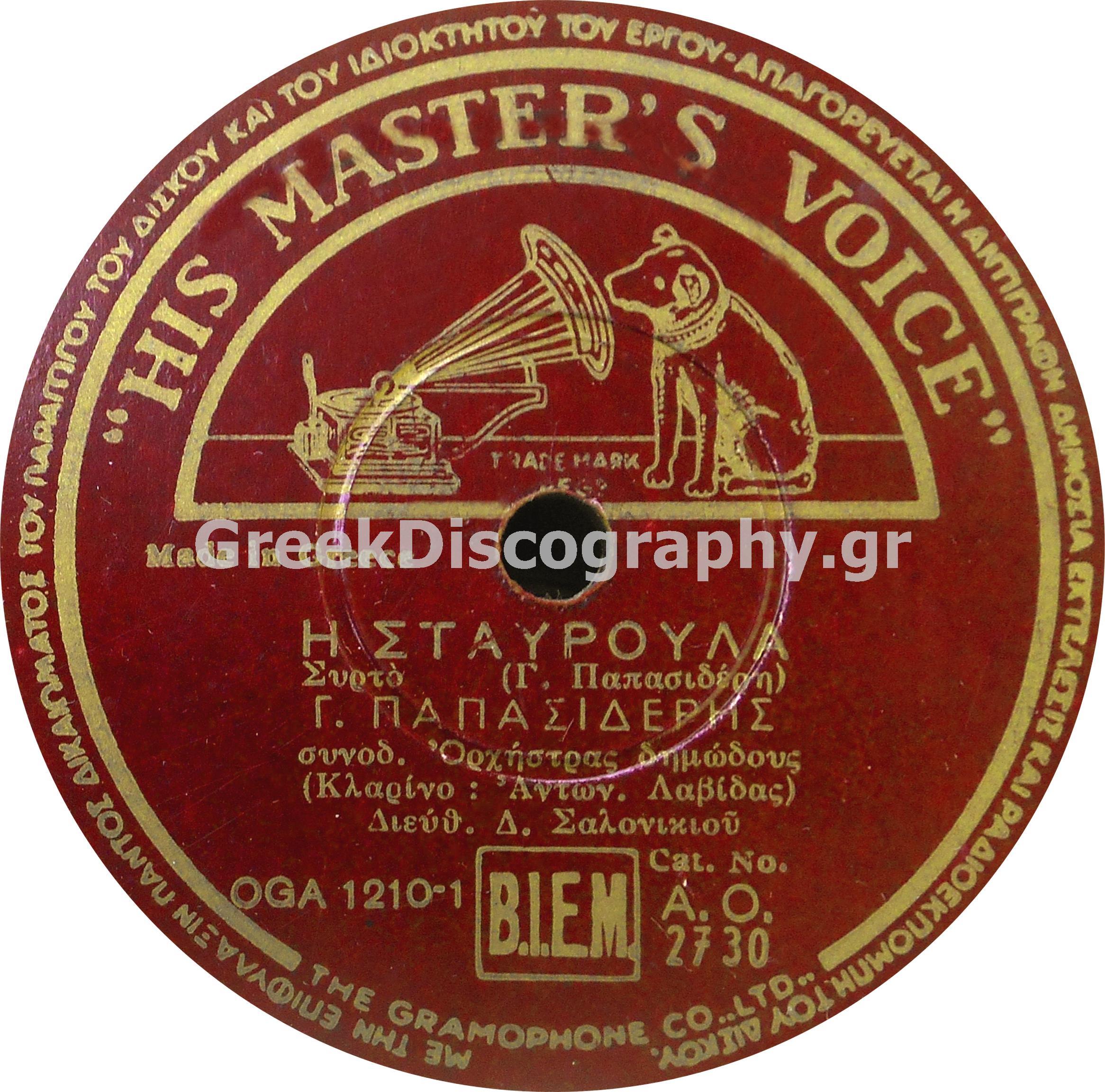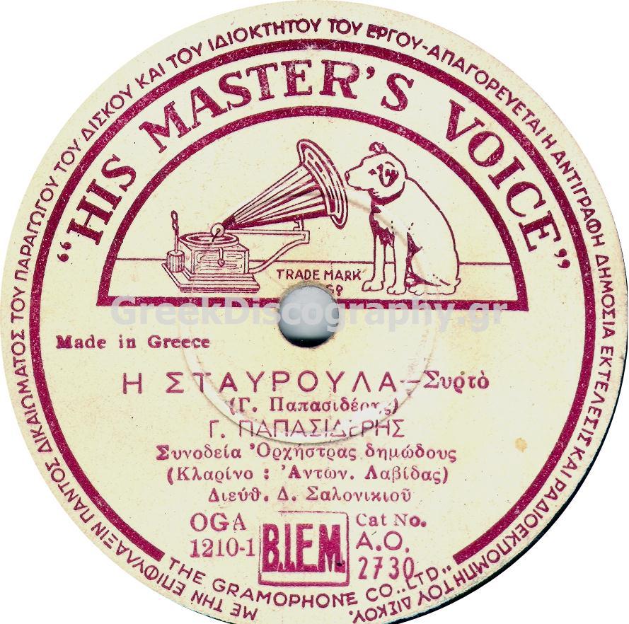 HIS MASTER'S VOICE (ΕΛΛΑΔΟΣ) 78ΣΤΡΟΦΕΣ
