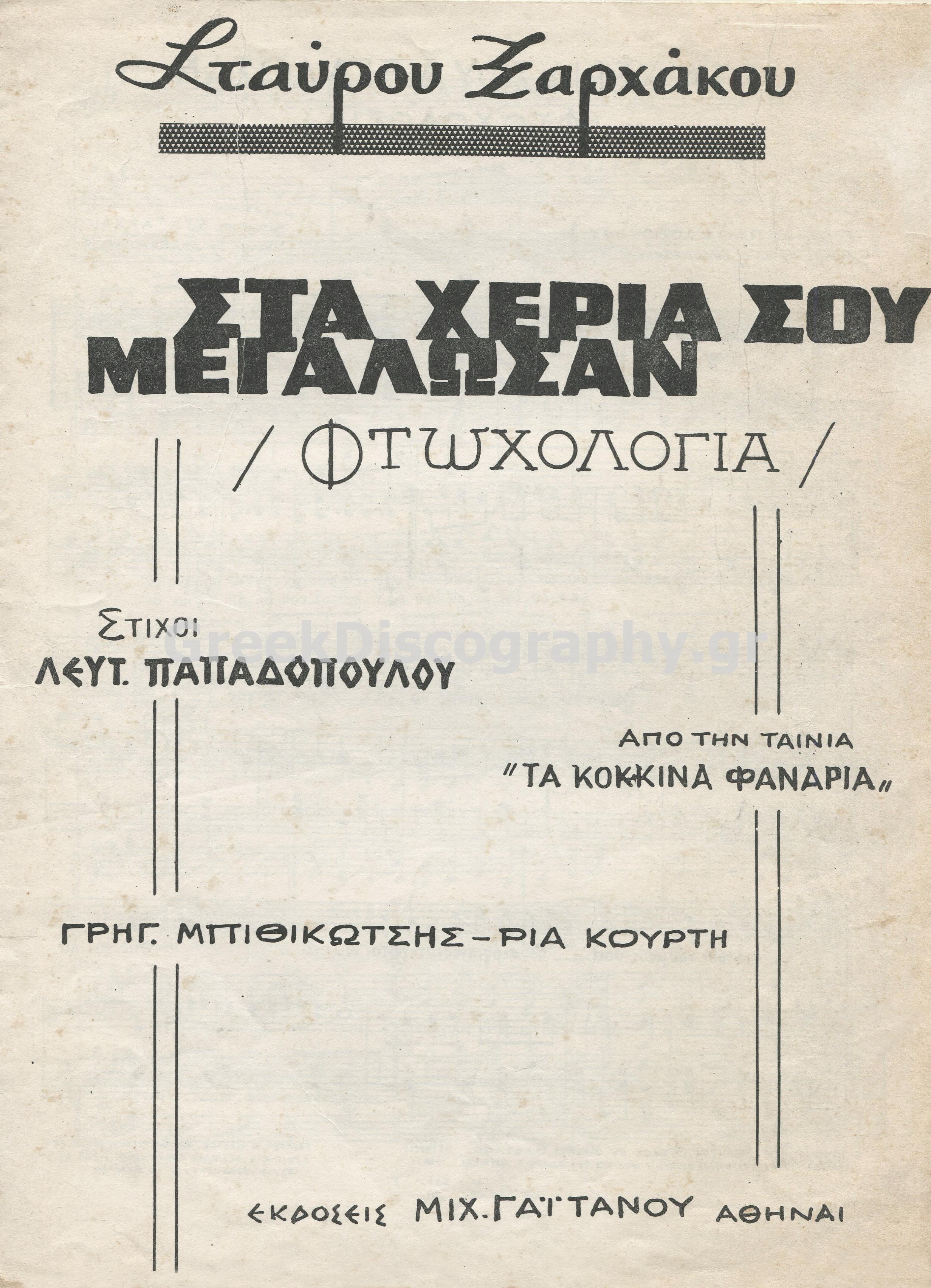 ΣΤΑ ΧΕΡΙΑ ΣΟΥ ΜΕΓΑΛΩΣΑΝ (Φτωχολογιά)