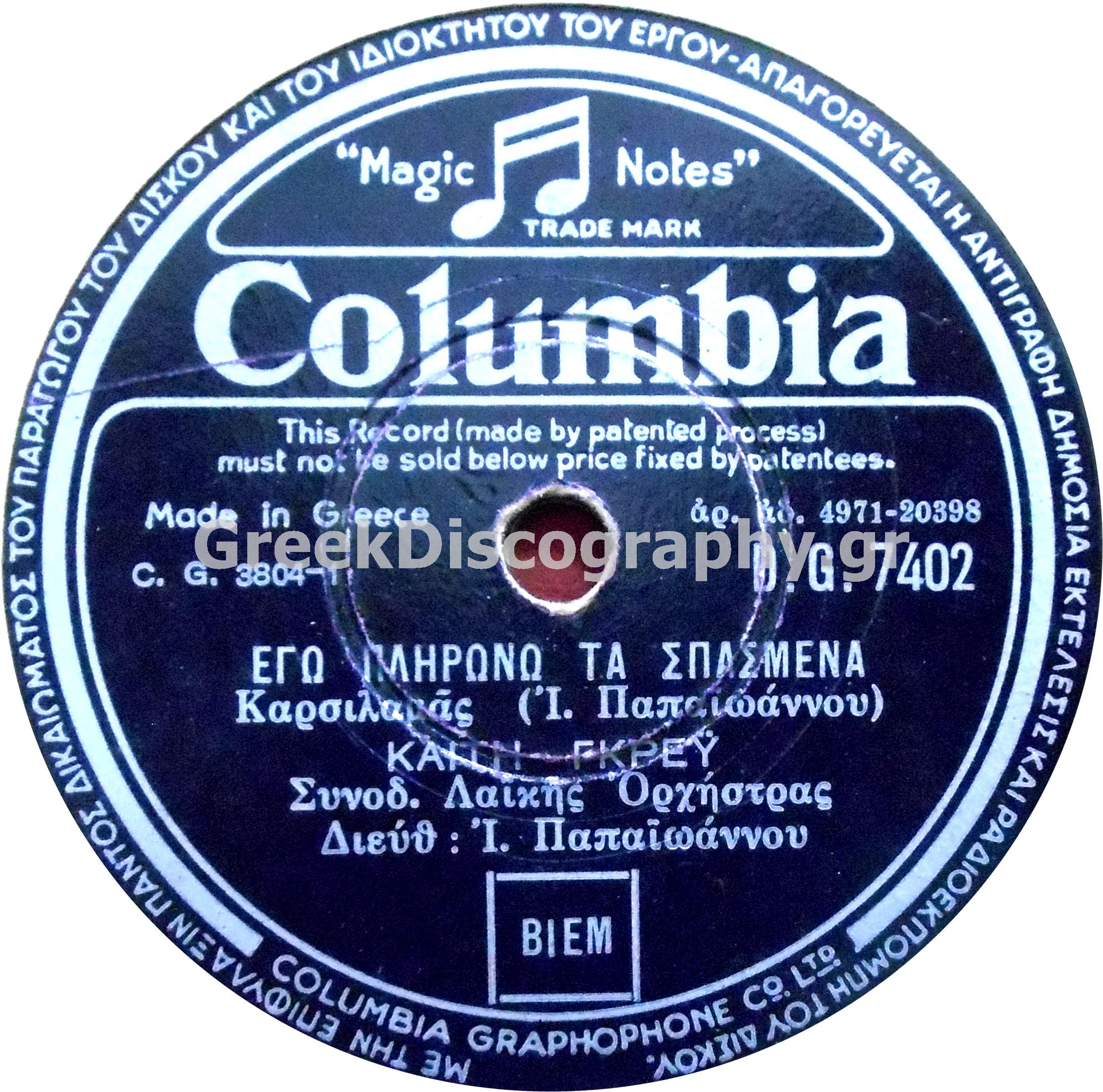 COLUMBIA (ΕΛΛΑΔΟΣ) 78 ΣΤΡΟΦΕΣ