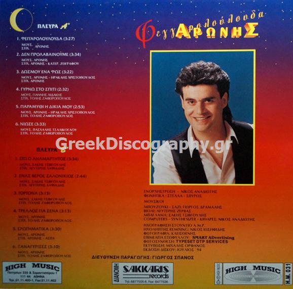 Διονύσης (Σάκης) Αρώνης, γεννήθηκε στις 17/9/1963 στην Γαστούνη Ηλείας, επαγγελματίας τραγουδιστής από το 1984