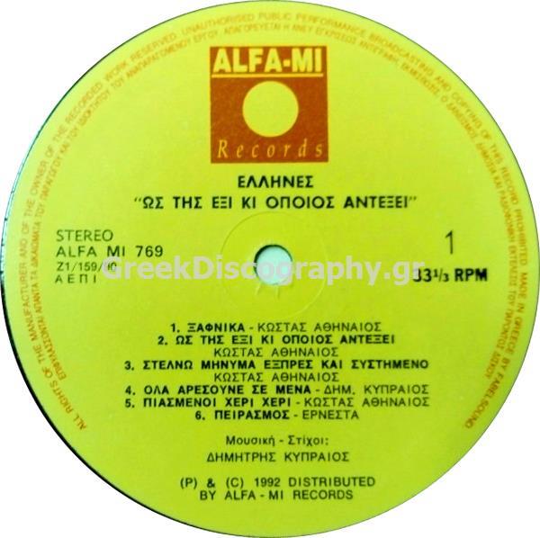 Πατήστε εδώ για να δείτε τα τραγούδια που περιέχονται στον δισκο