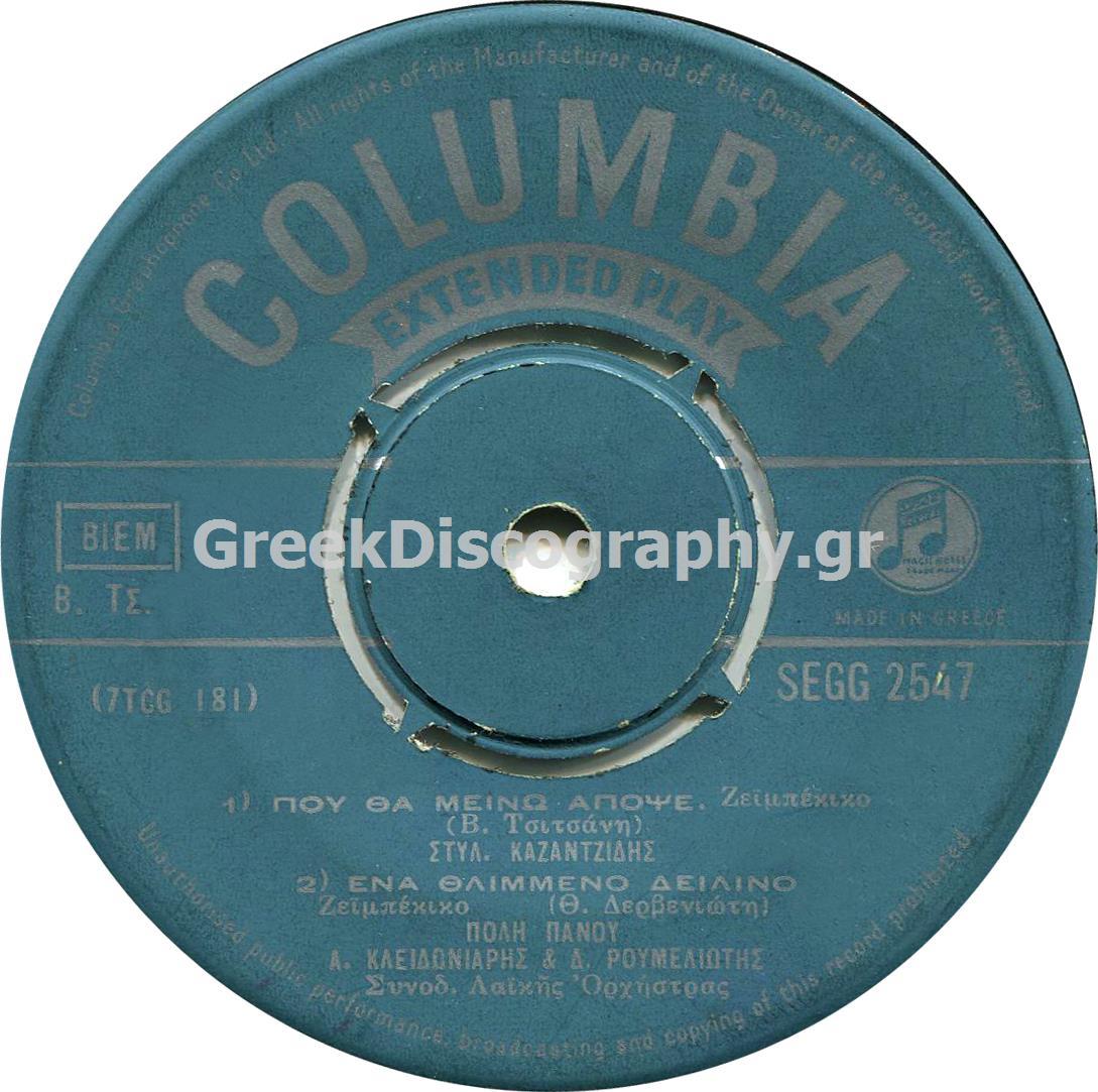 Κιθάρα: ΧΡΥΣΙΝΗΣ ΣΤΕΛΙΟΣ, Μπαγλαμάς: ΧΡΥΣΙΝΗΣ ΠΑΝΟΣ, Μπουζούκι: ΑΘΑΝΑΣΙΟΥ ΑΝΕΣΤΟΣ, Μπουζούκι: ΜΑΚΡΥΔΑΚΗΣ ΣΤΕΛΙΟΣ