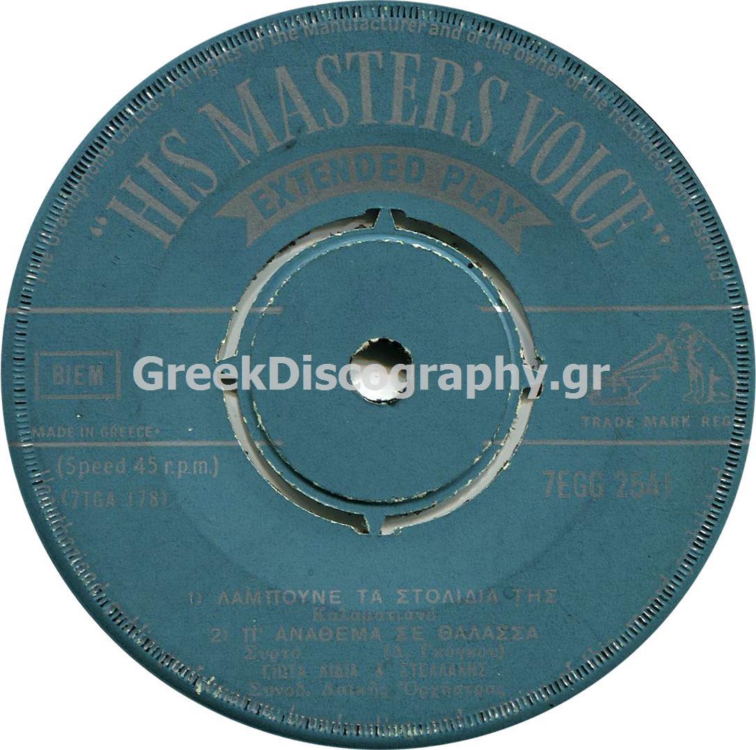 Ακορντεόν: ΚΟΥΛΑΞΙΖΗΣ ΓΙΩΡΓΟΣ, Βιολί: ΛΑΖΑΡΟΥ ΣΤΕΛΙΟΣ (Θηβαίος), Κιθάρα: ΚΑΠΕΤΑΝΙΟΣ ΚΩΣΤΑΣ, Μπουζούκι: ΤΑΤΑΣΟΠΟΥΛΟΣ ΙΩΑΝΝΗΣ