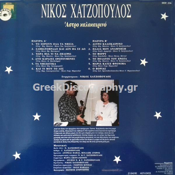 βιολί, γεννήθηκε στις 11/6/1961 Αθήνα, ξάδελφος του Νικόλα Χατζόπουλου